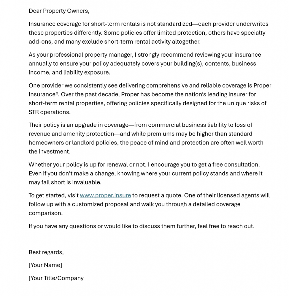 These webinars are typically co-hosted by the property manager and the Proper Insurance agent assigned to your region, giving owners a direct introduction to the expert who can support their needs.